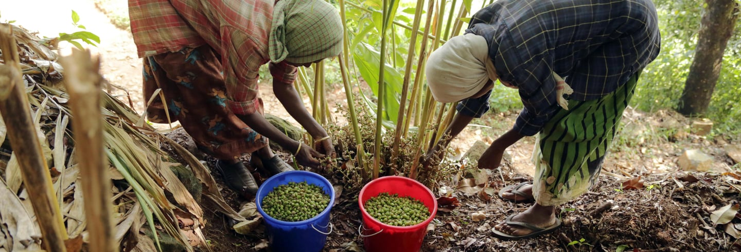 Green Cardamom — harvested from the lush Western Ghats, primarily in Kerala, known for its rich aroma and flavor.